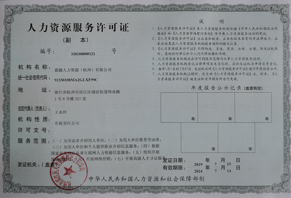 人力资源服务许可证